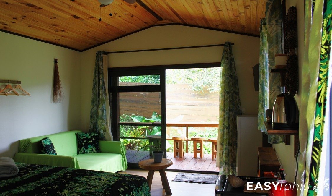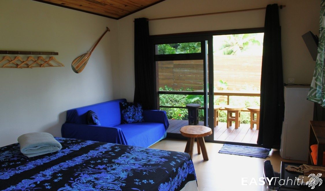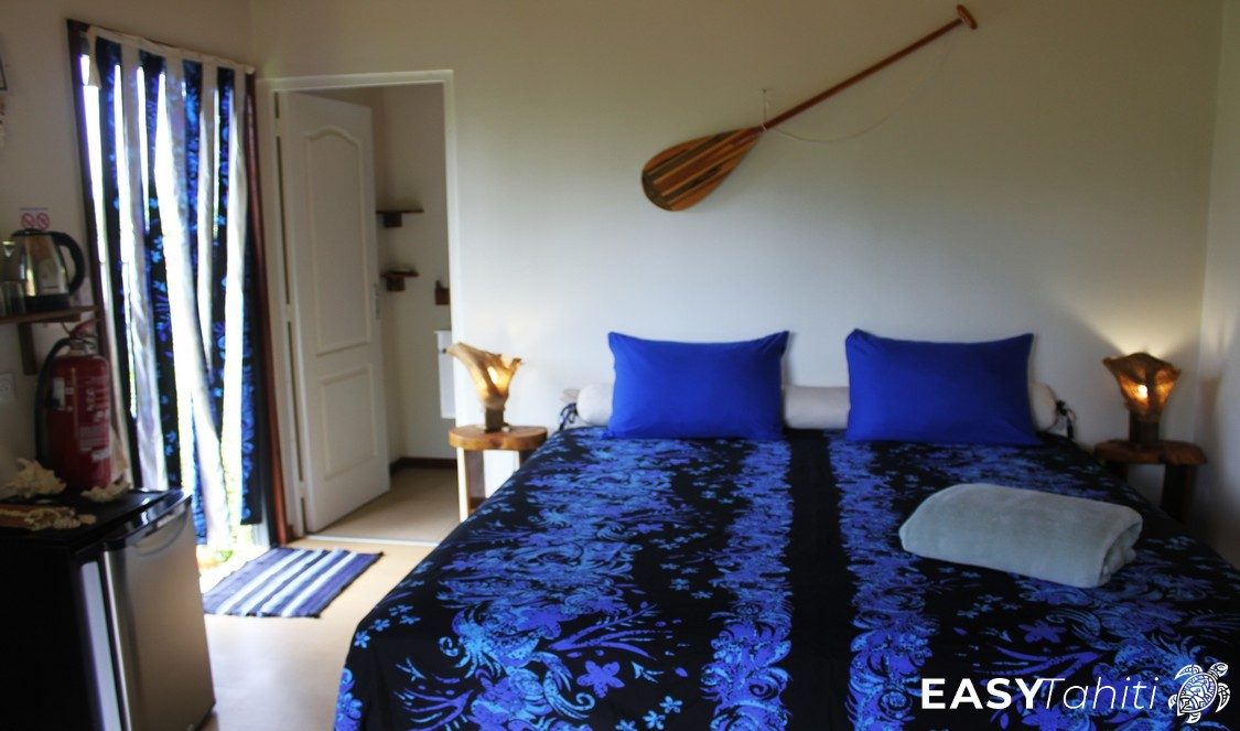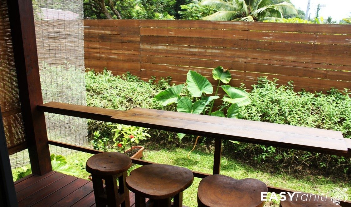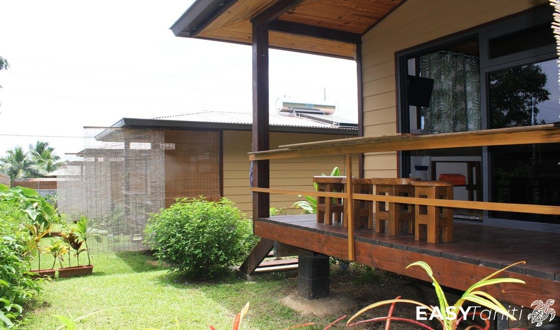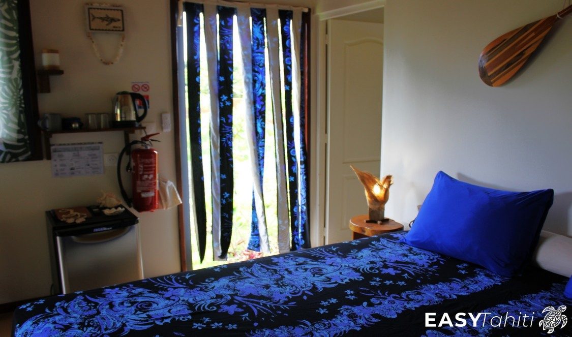 - For its well-designed bungalows: Five 24 m² units, each decorated with a unique Polynesian theme. Every bungalow features a private bathroom with hot water, a ceiling fan, a terrace, and quality bedding.