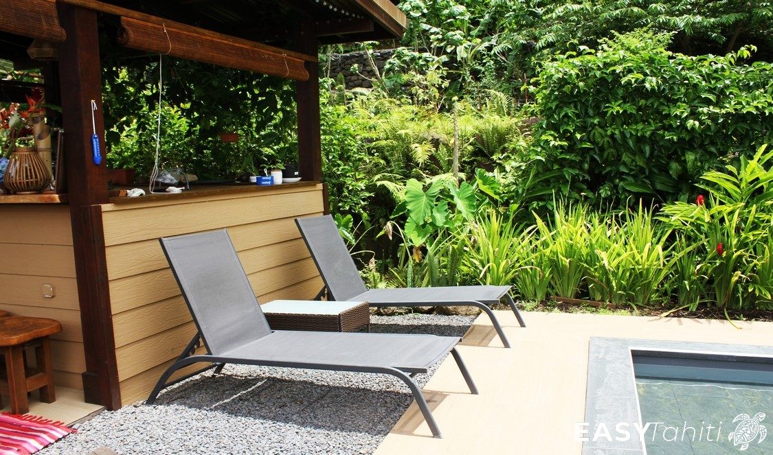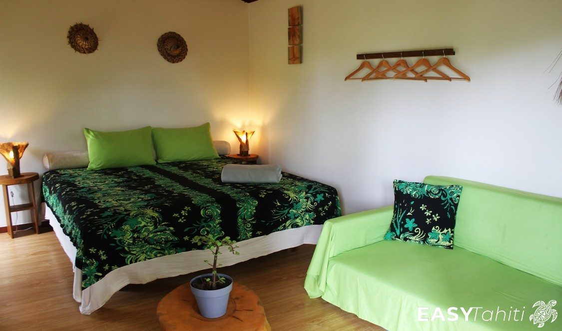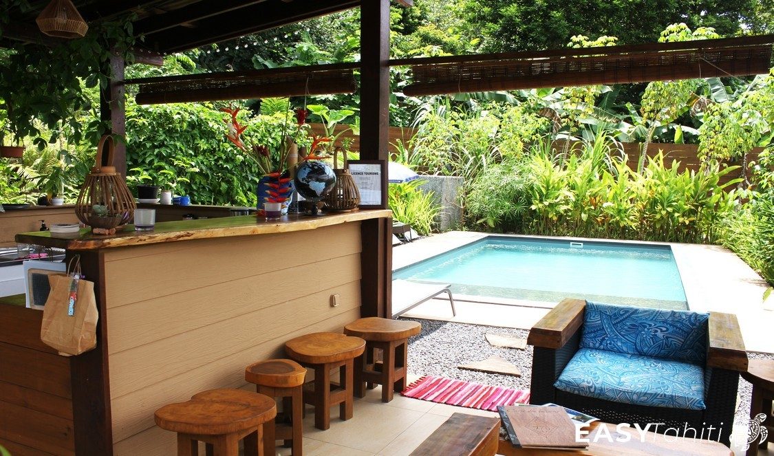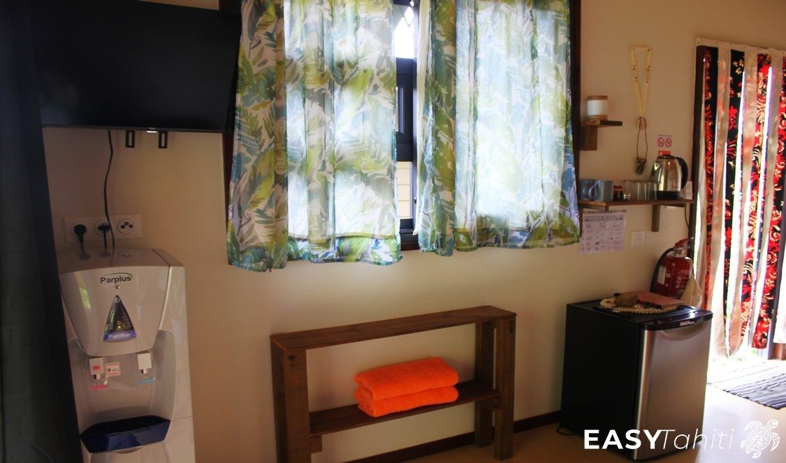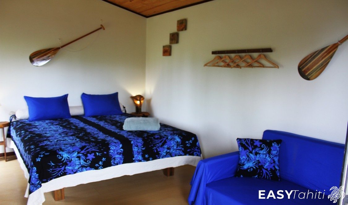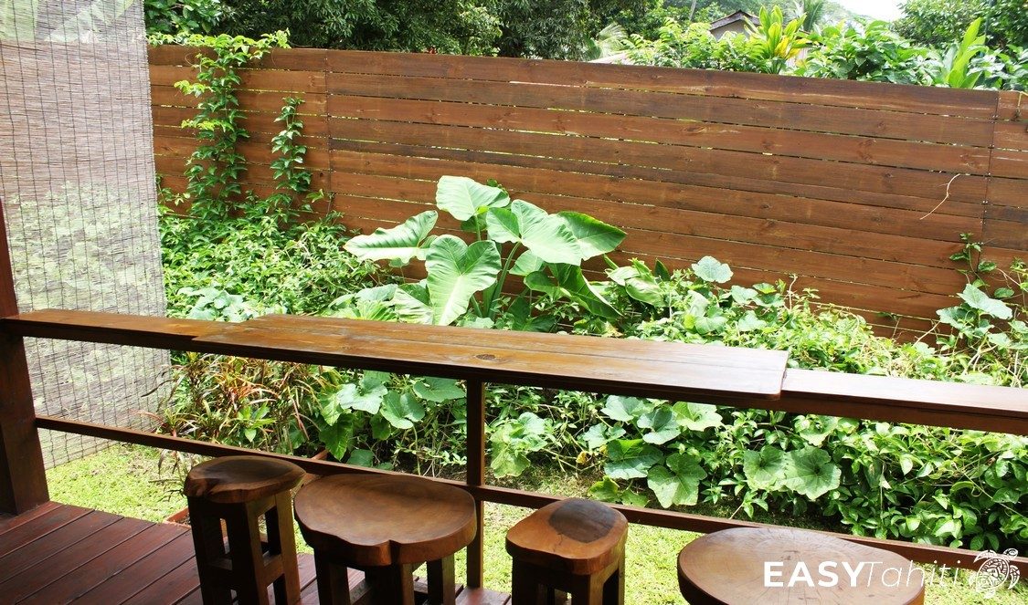 - For its well-designed bungalows: Five 24 m² units, each decorated with a unique Polynesian theme. Every bungalow features a private bathroom with hot water, a ceiling fan, a terrace, and quality bedding.