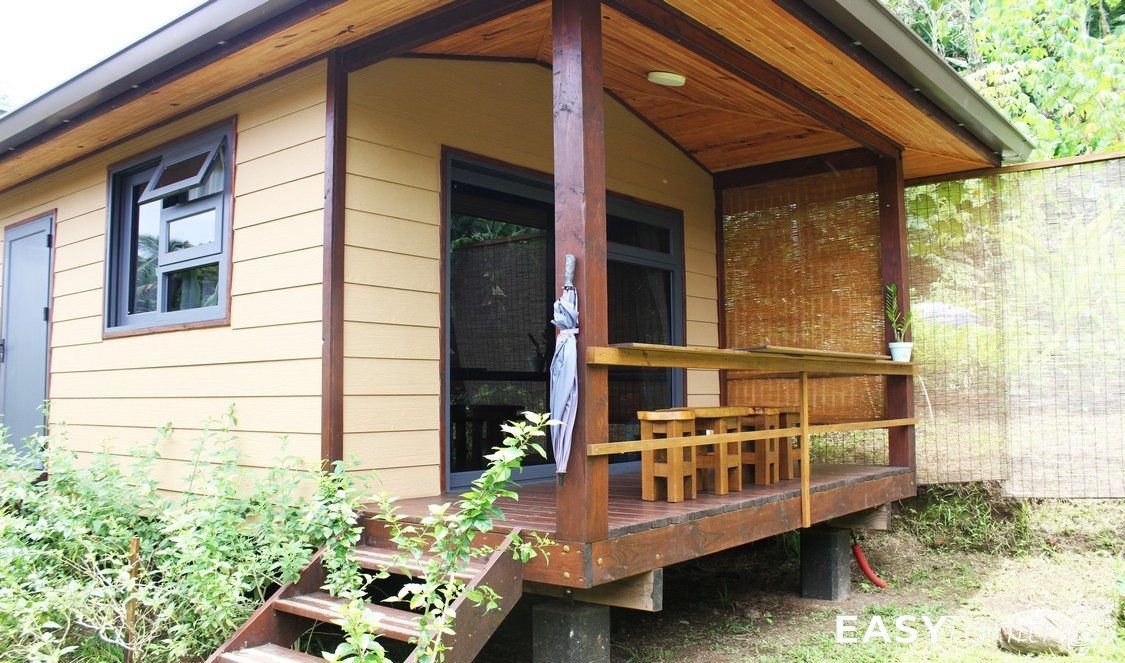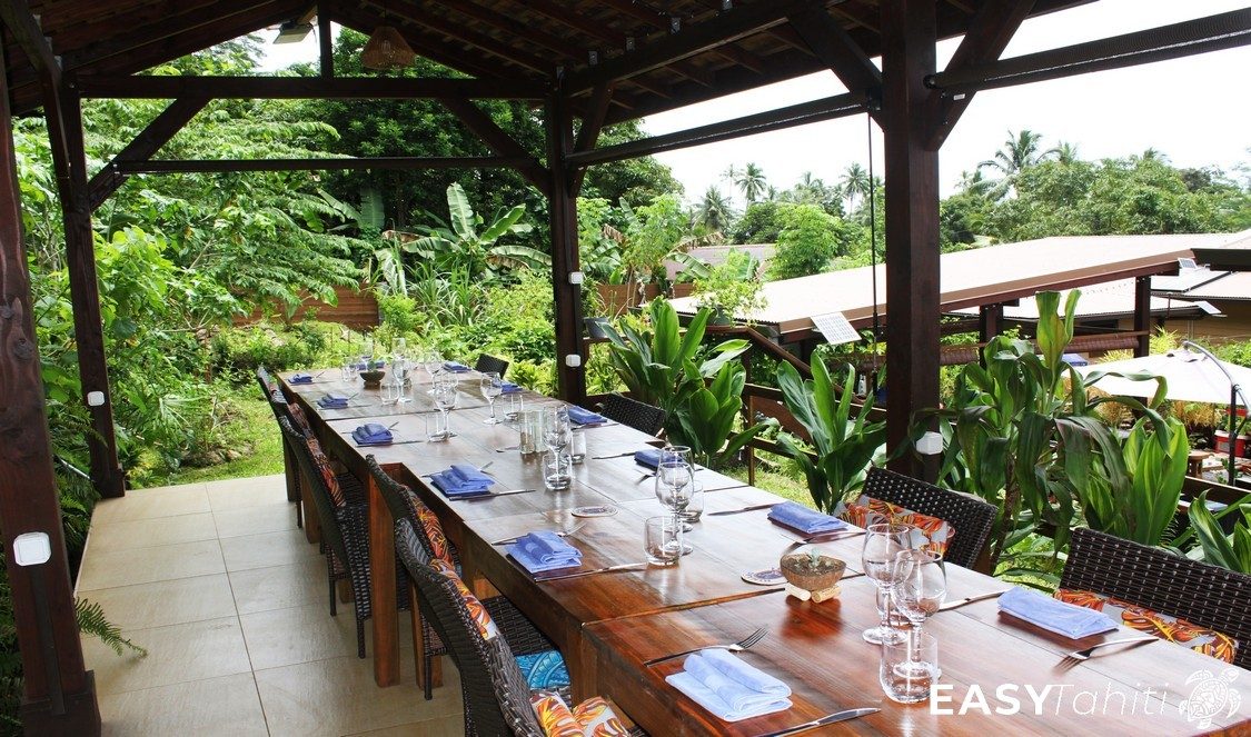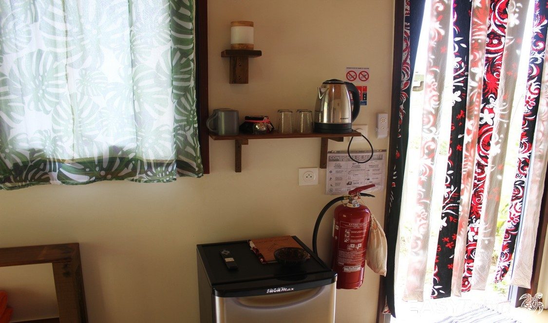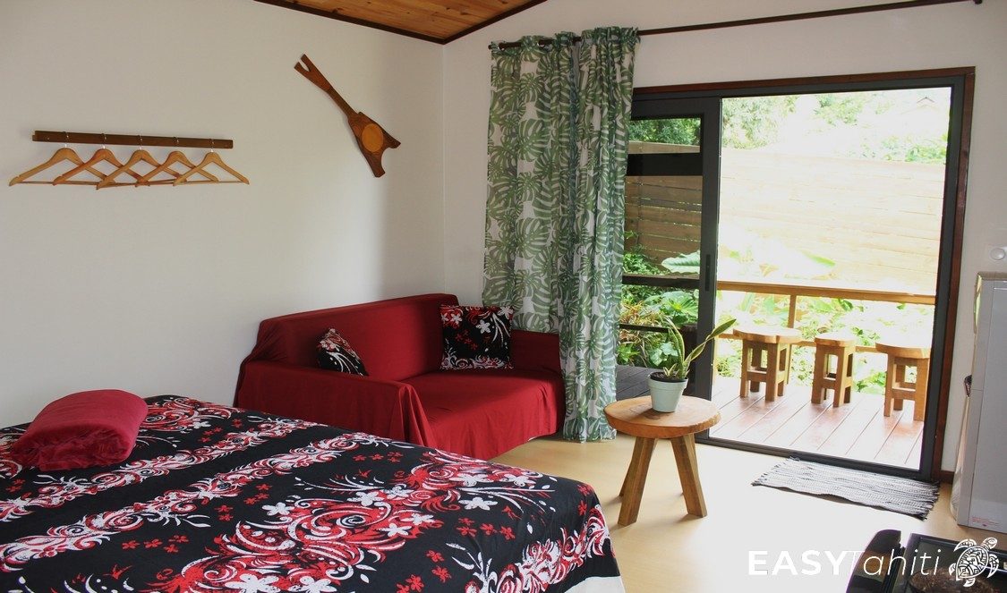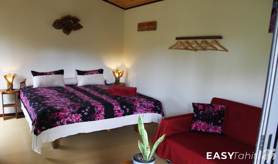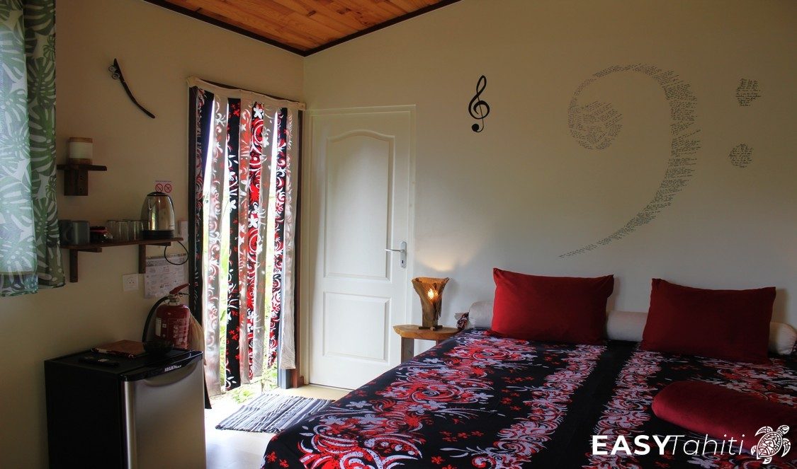 - For its well-designed bungalows: Five 24 m² units, each decorated with a unique Polynesian theme. Every bungalow features a private bathroom with hot water, a ceiling fan, a terrace, and quality bedding.