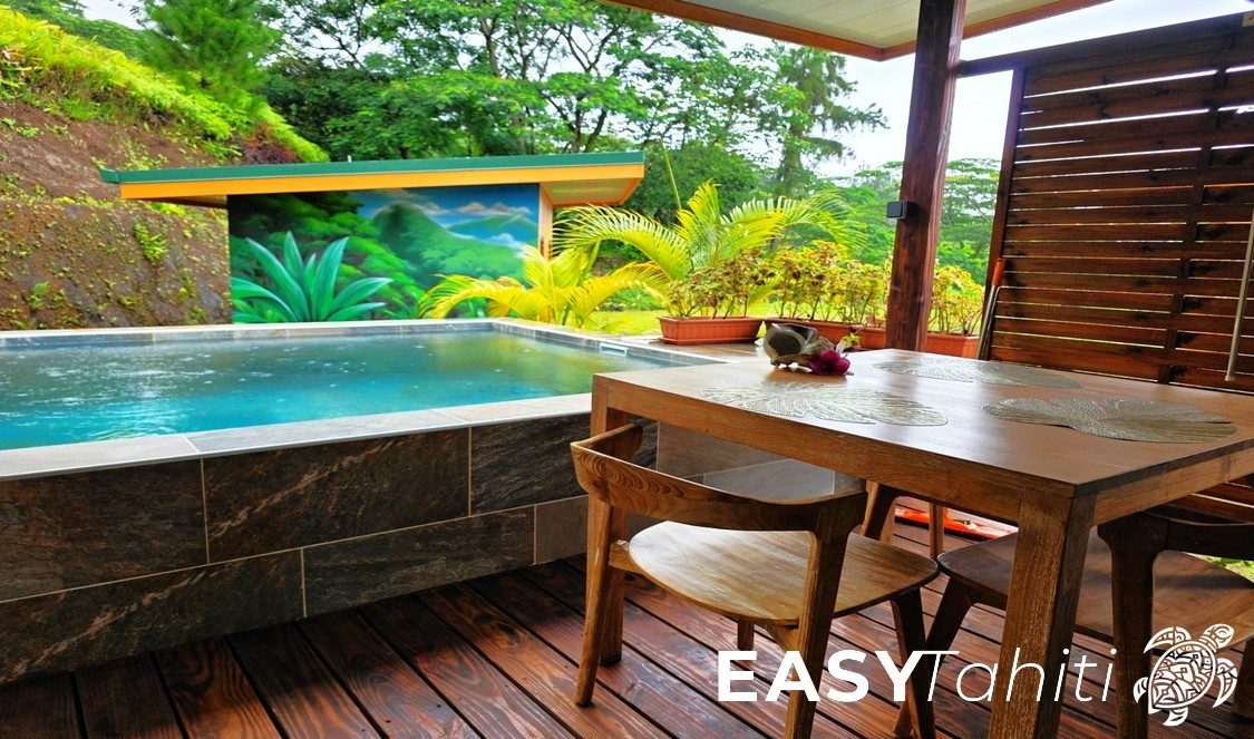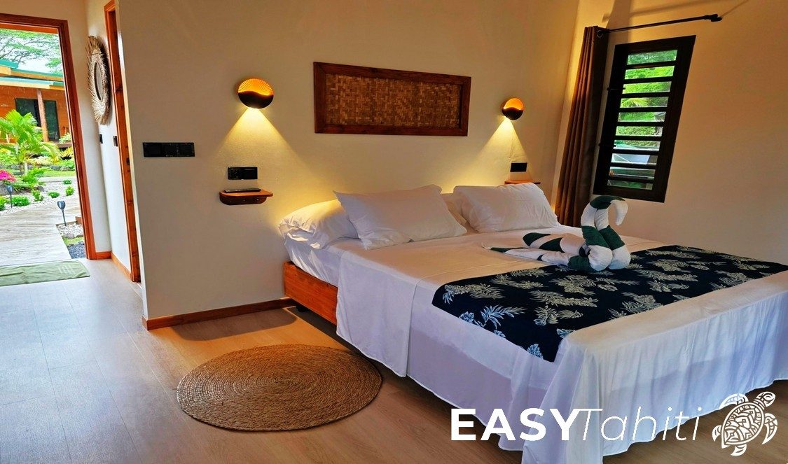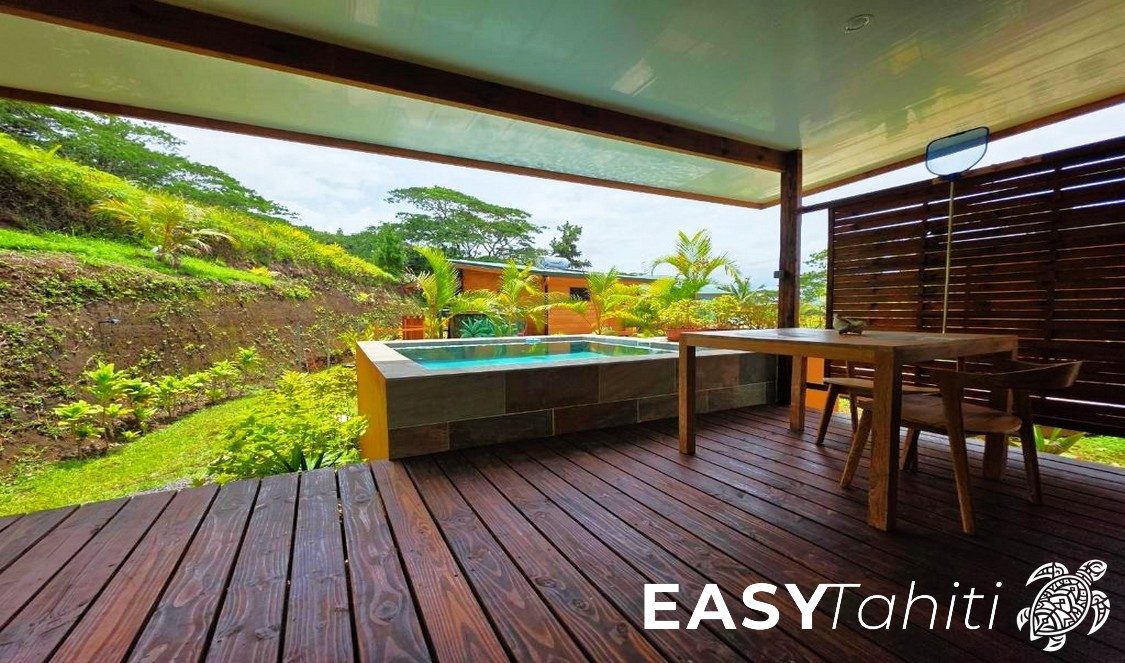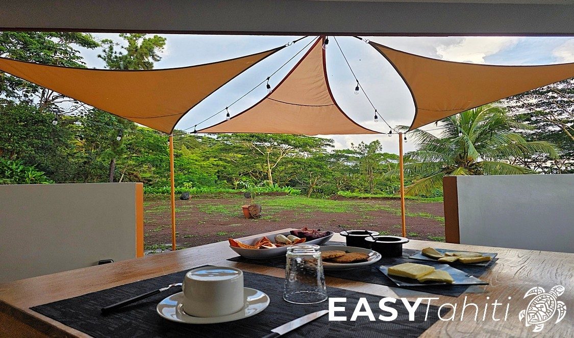 - For its peaceful and green setting: Located in Pueu (PK 9.7, mountain side), Revatua Lodge offers a preserved natural environment, perfect for relaxation, with open views and a serene atmosphere, just 1 km from the lagoon and the beach.