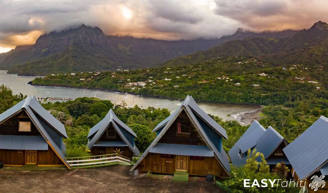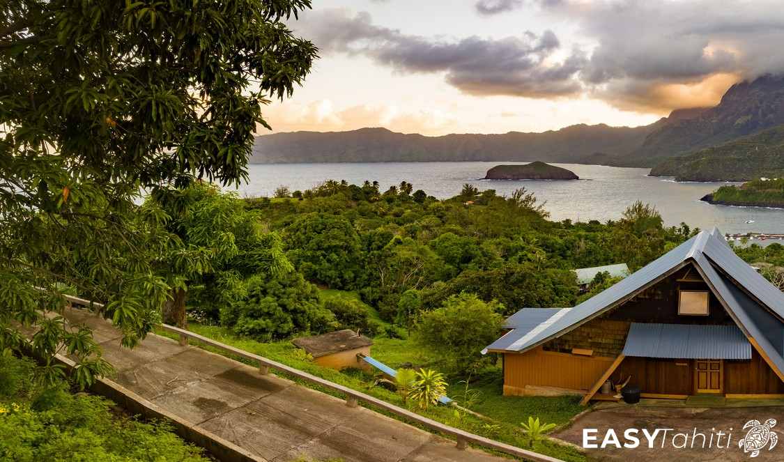 - Pour sa vue panoramique exceptionnelle : Les chalets bénéficient d’une vue imprenable sur la baie de Tahauku, le port, la mer et les montagnes environnantes.