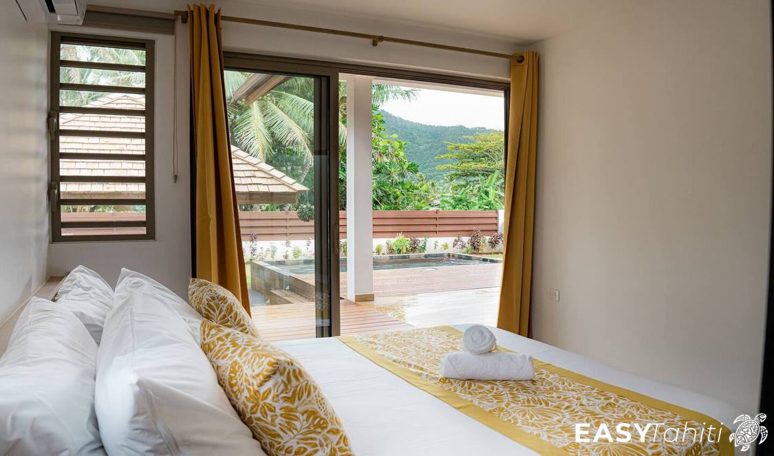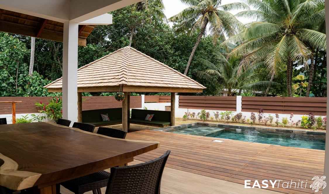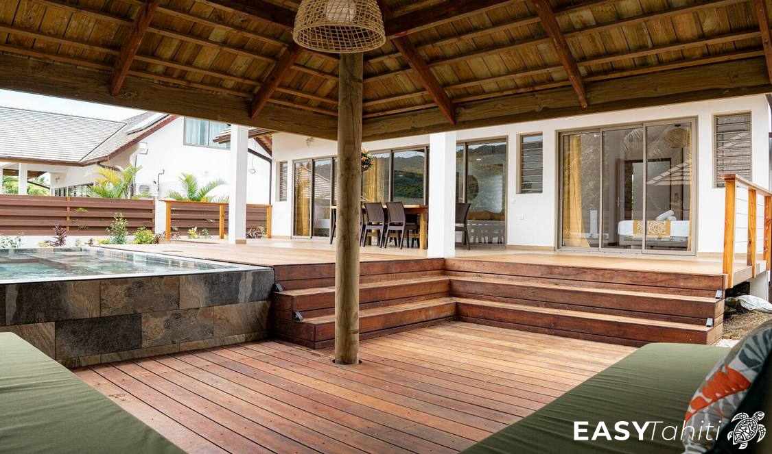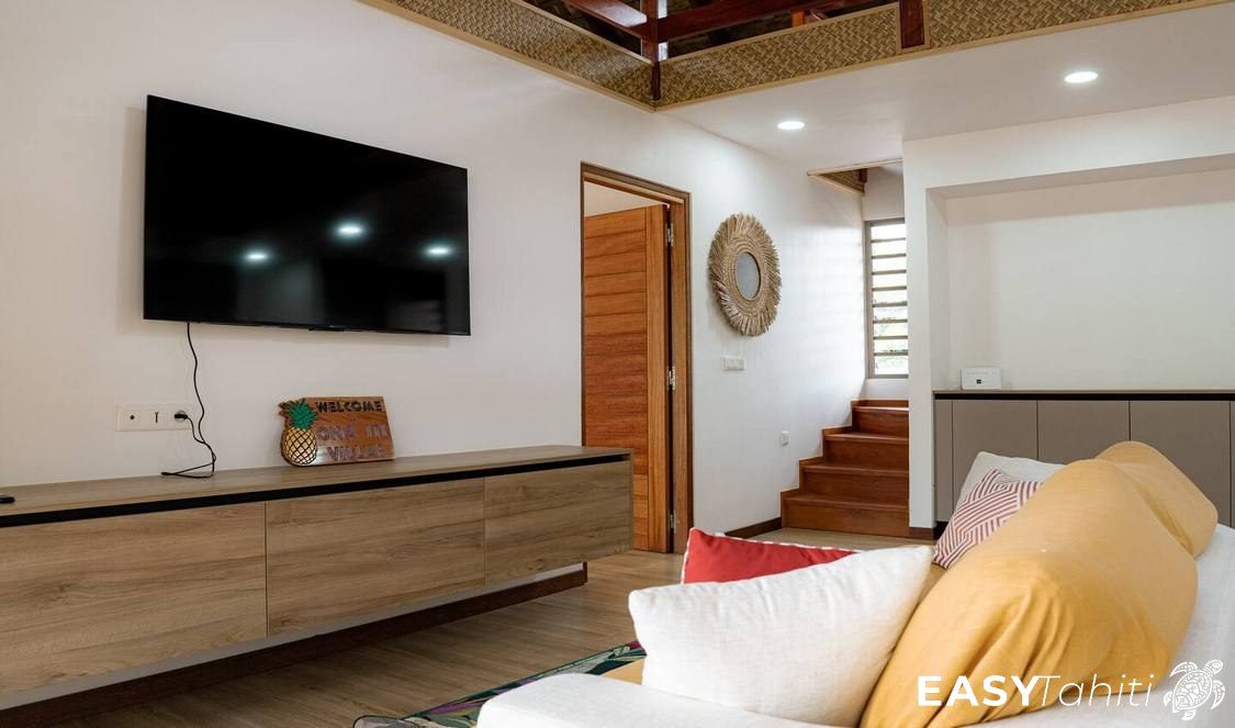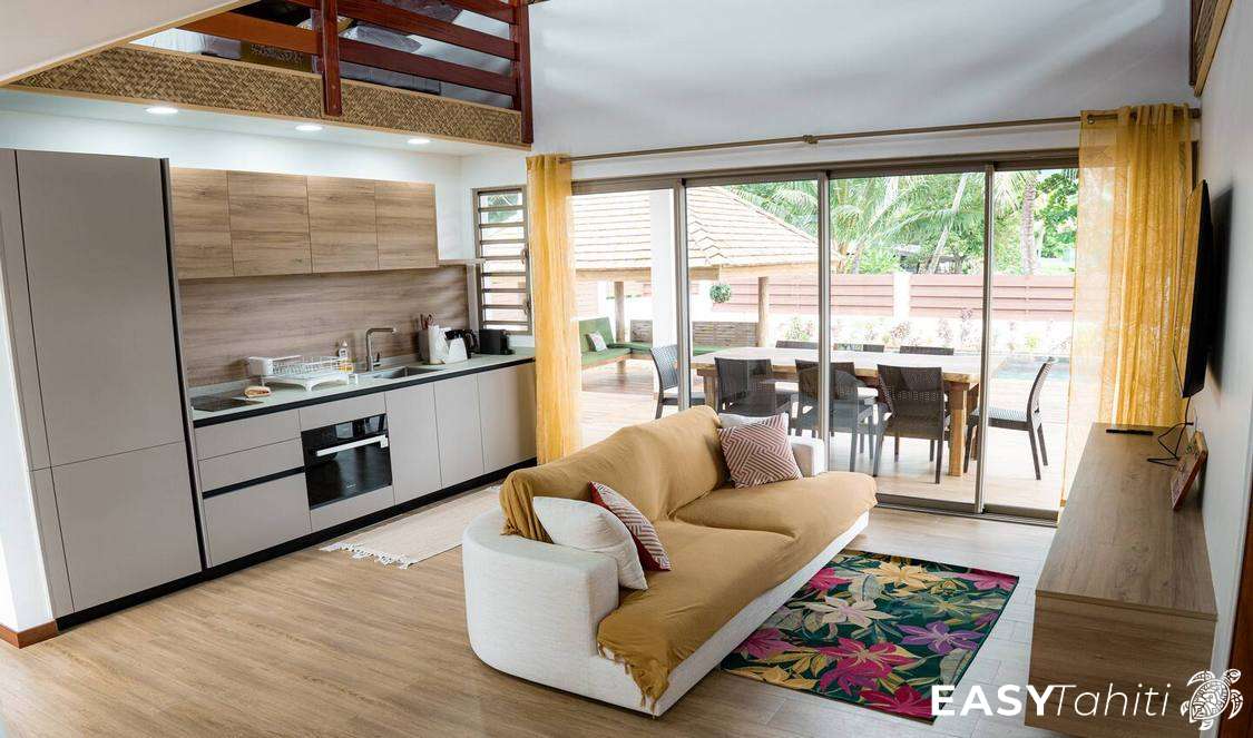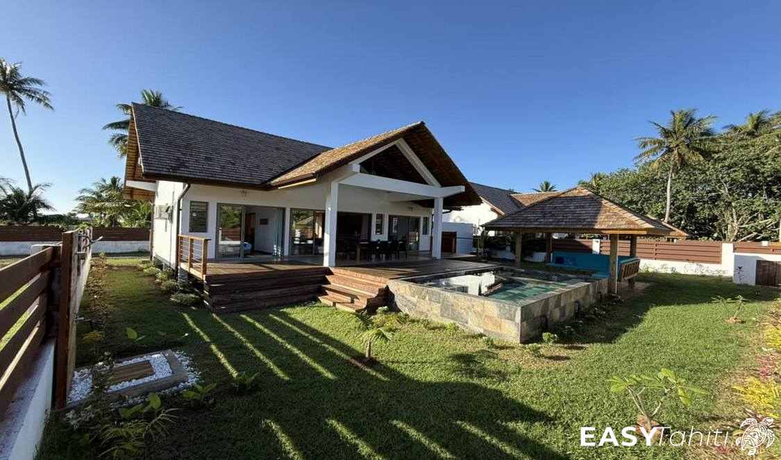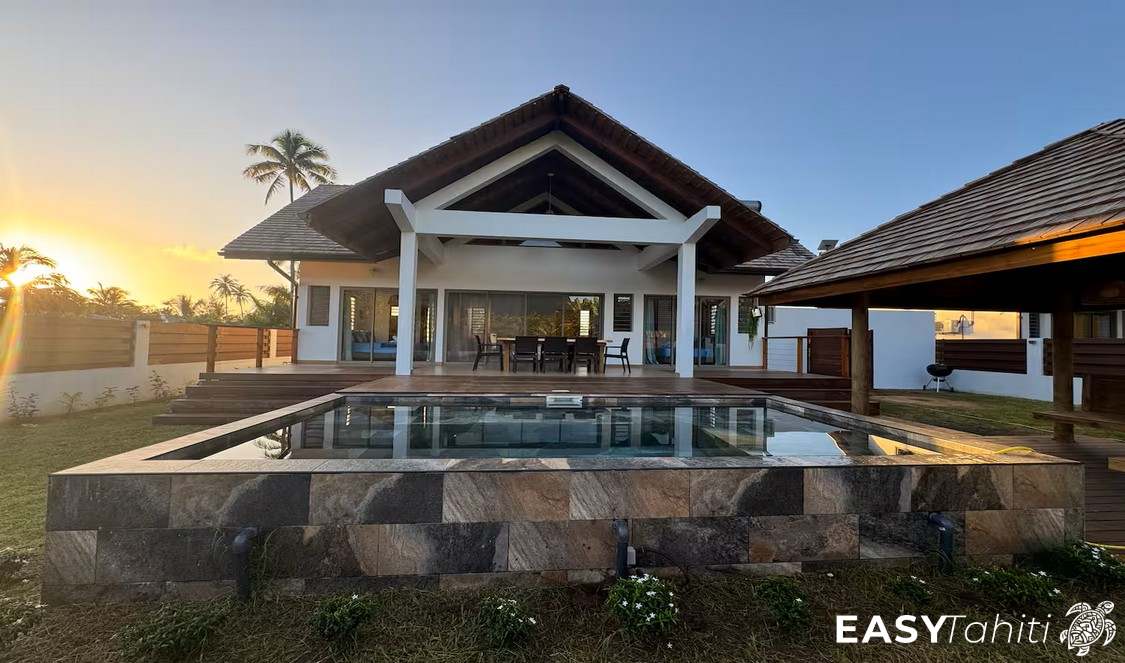 Deux villas, jumelles et modernes, alliant confort contemporain et inspiration polynésienne, situées dans un quartier paisible de Maatea, à quelques pas de la plage.